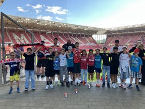 Am vergangenen Sonntag erlebte die E1 ihr erstes Saisonhighlight, bei dem sie nicht selbst auf dem Fußballplatz standen. Als der 1.FC Köln als Aufsteiger feststand, wuchs – begünstigt durch die Clubpartnerschaft mit dem 1.FSV Mainz 05 – schnell die Idee die Partie Mainz 05 gegen den Effzeh im Stadion zu gucken. Der neue Spielplan ermöglichte es den jungen Löwen dieses Event als eine etwas andere Saisoneröffnung zu nutzen. Top motiviert trafen sich die Jungs mit ihren Trainern und Begleitern am Sonntagmittag, um in zwei Kleinbussen die Fahrt nach Mainz anzutreten. Bei perfektem Fußballwetter war die Stimmung in der Mannschaft herausragend, auch wenn das Spiel nur selten Höhepunkte bot. Als die Gäste dann kurz vor Schluss doch noch in Führung gingen, war der Jubel grenzenlos und auch der leicht betrübte Trainer (Mainz-Fan) konnte nur zustimmen: Das war ein mehr als gelungenes Teamevent. Die Mannschaft hofft auf eine Wiederholung in der nächsten Saison, das würde nämlich auch bedeuten, dass beide Vereine ein weiteres Jahr in der 1.Bundesliga spielen.