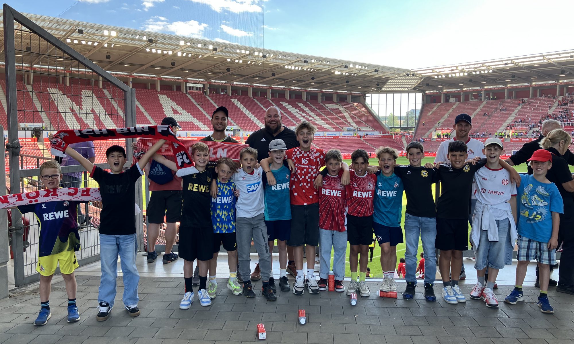Am vergangenen Sonntag erlebte die E1 ihr erstes Saisonhighlight, bei dem sie nicht selbst auf dem Fußballplatz standen. Als der 1.FC Köln als Aufsteiger feststand, wuchs – begünstigt durch die Clubpartnerschaft mit dem 1.FSV Mainz 05 – schnell die Idee die Partie Mainz 05 gegen den Effzeh im Stadion zu gucken. Der neue Spielplan ermöglichte es den jungen Löwen dieses Event als eine etwas andere Saisoneröffnung zu nutzen. Top motiviert trafen sich die Jungs mit ihren Trainern und Begleitern am Sonntagmittag, um in zwei Kleinbussen die Fahrt nach Mainz anzutreten. Bei perfektem Fußballwetter war die Stimmung in der Mannschaft herausragend, auch wenn das Spiel nur selten Höhepunkte bot. Als die Gäste dann kurz vor Schluss doch noch in Führung gingen, war der Jubel grenzenlos und auch der leicht betrübte Trainer (Mainz-Fan) konnte nur zustimmen: Das war ein mehr als gelungenes Teamevent. Die Mannschaft hofft auf eine Wiederholung in der nächsten Saison, das würde nämlich auch bedeuten, dass beide Vereine ein weiteres Jahr in der 1.Bundesliga spielen.