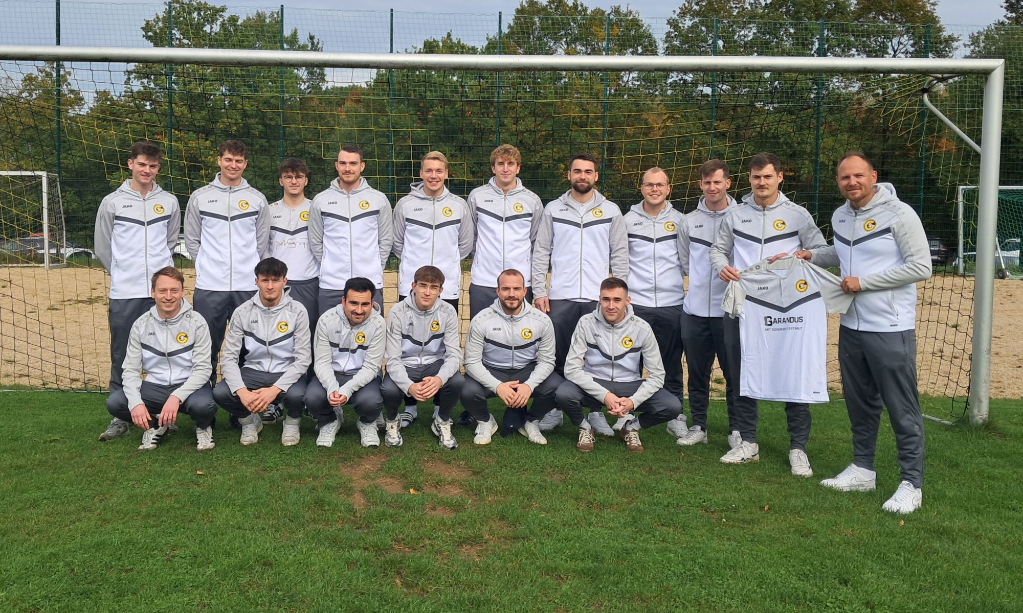 Vor dem Spiel gegen den SC Rhein Ahr Sinzig erfolgte die offizielle Übergabe. Trainer Alex Dick übernahm stellvertretend für den Sponsor und übergab die Ausrüstung an Kapitän Ron Nolden und seine Mannschaft.