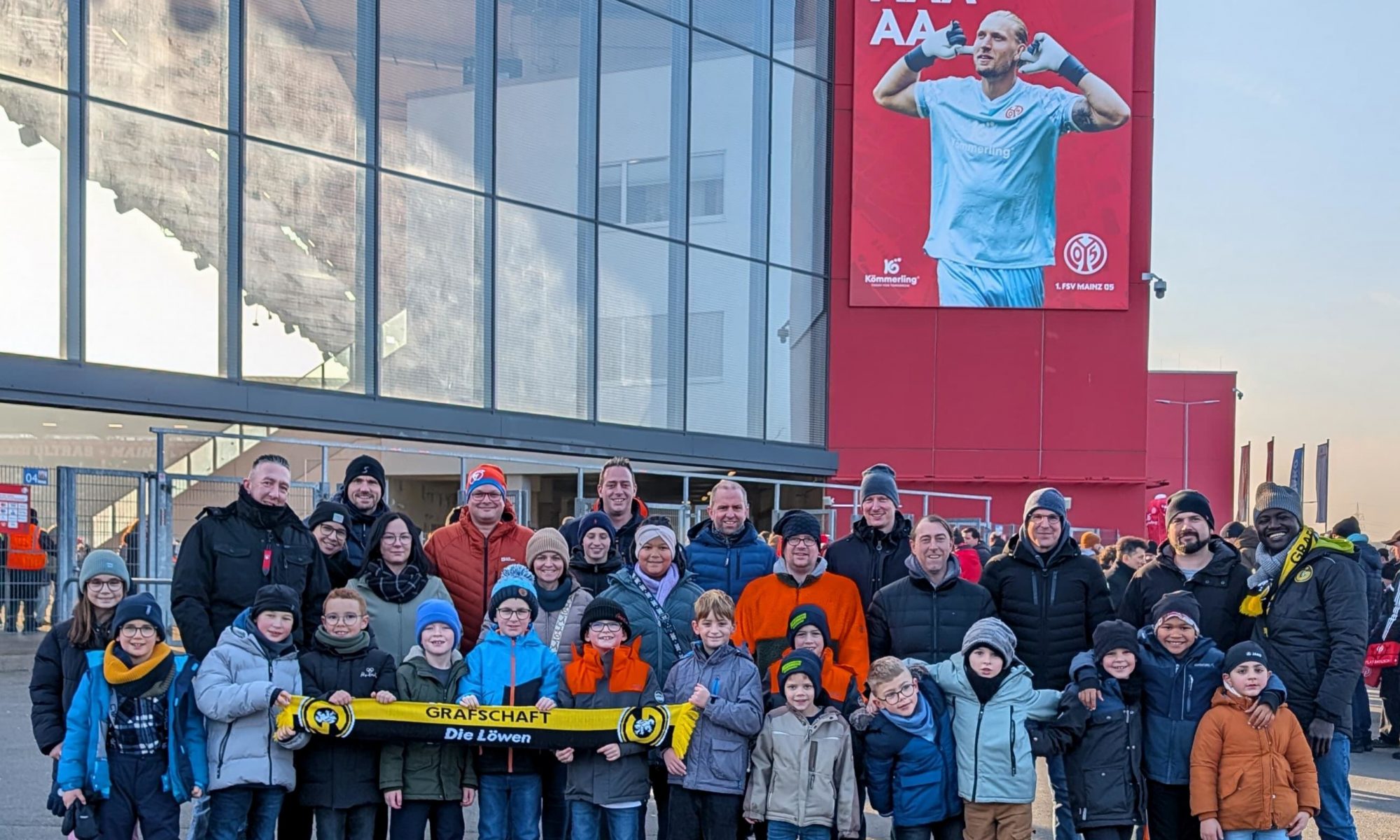 Im Rahmen einer Teambuilding-Maßnahme besuchte die Mannschaft gemeinsam mit Geschwistern, Eltern und Trainern das Stadion in Mainz. Mit insgesamt 31 Personen reiste die Gruppe zum Bundesliga Spiel Mainz gegen Wolfsburg. Für viele der Kids, war es ein besonderes Erlebnis Stadionluft zu schnuppern und die Bundesligamannschafen anzufeuern. Dieser Tag stärkte das Gemeinschaftsgefühl – für die Grafschafter FIII/FIV steht nicht nur der Fußball, sondern auch das Miteinander und die familiäre Atmosphäre im Vordergrund. Für alle stand am Ende fest, so ein Ausflug sollte wiederholt werden.